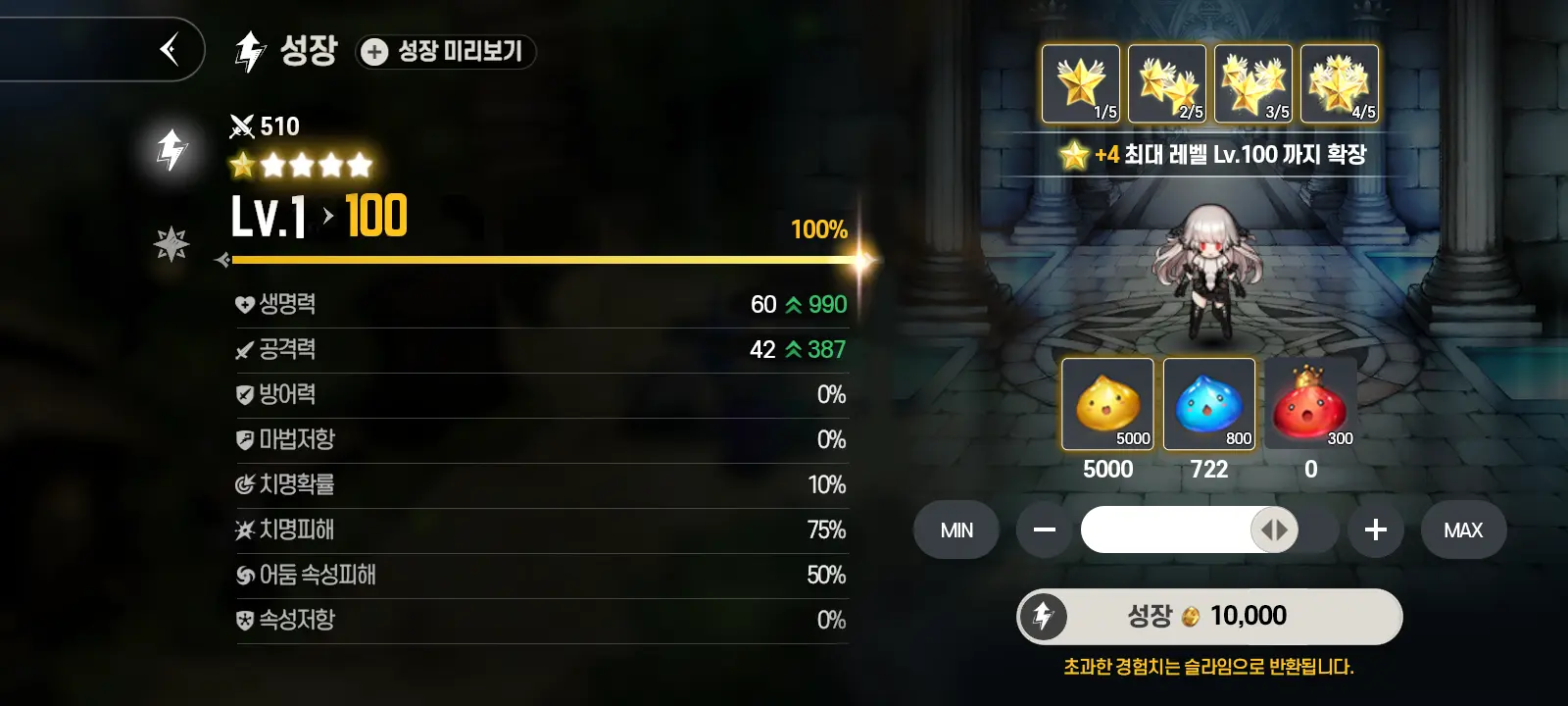 改善后,如果史莱姆和升级之星足够的话,