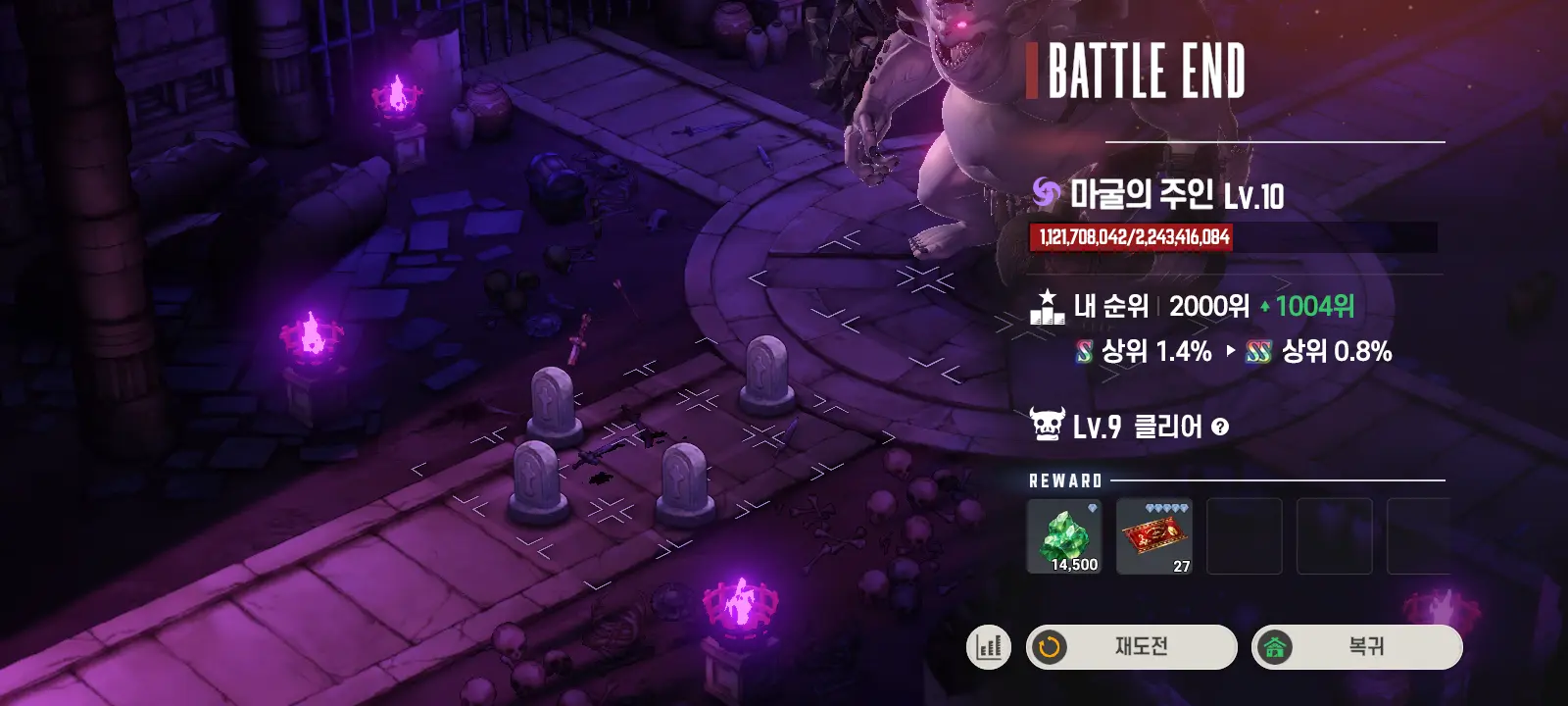 也可根据本轮对魔物造成的伤害自动判定完成低级区域的挑战。