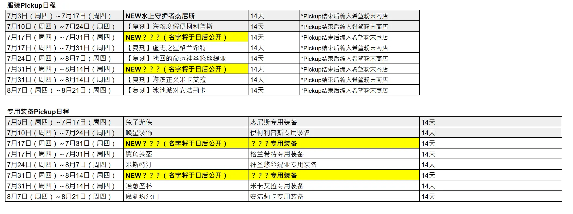 另外,我们还了解到后续活动时间表相关的泄露内容,经查证是基于活动更新日程,
