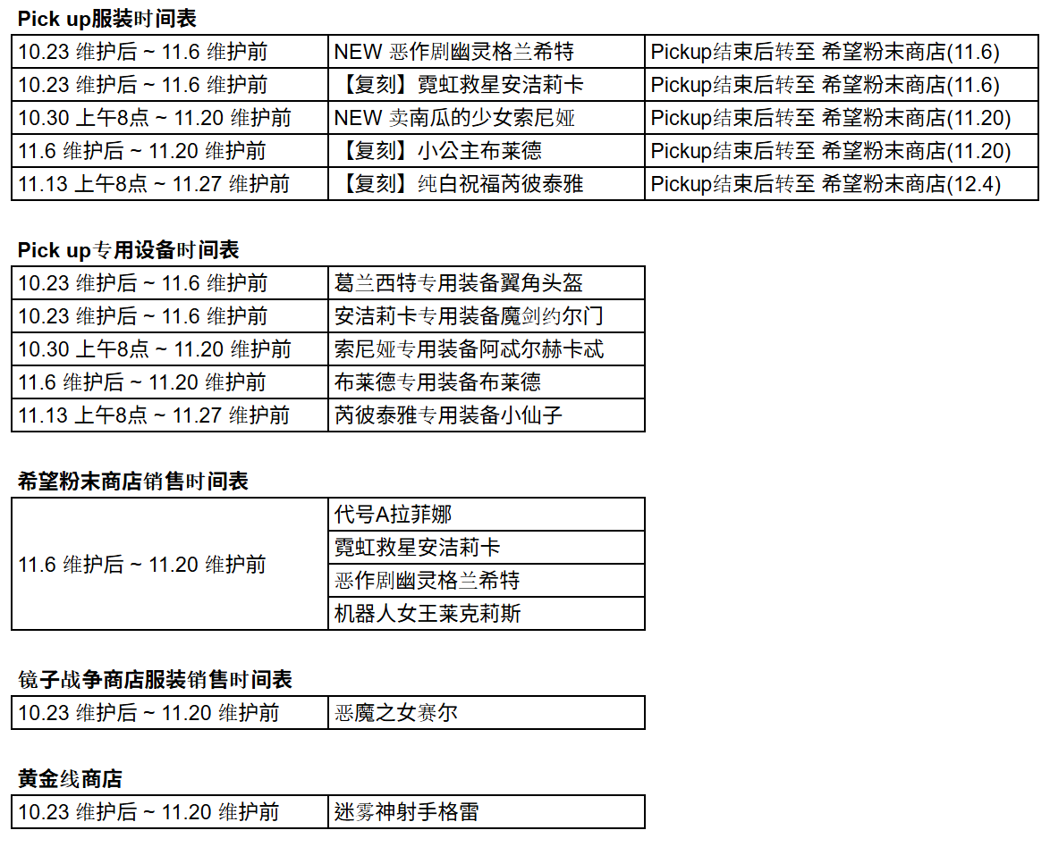 将于11月 6日(周四)进行定期维护和更新。请玩家留意游戏使用。