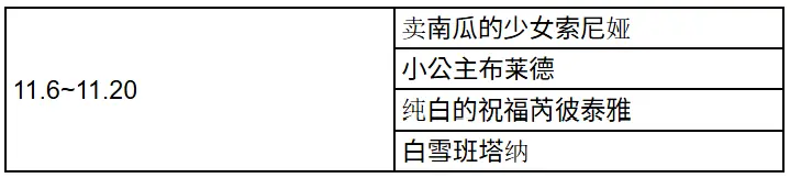 - 小公主布莱德的服装 : 2025年 11月 6日(周四)维护后 ~ 2025年 11月 20日(周四)维护前进行。