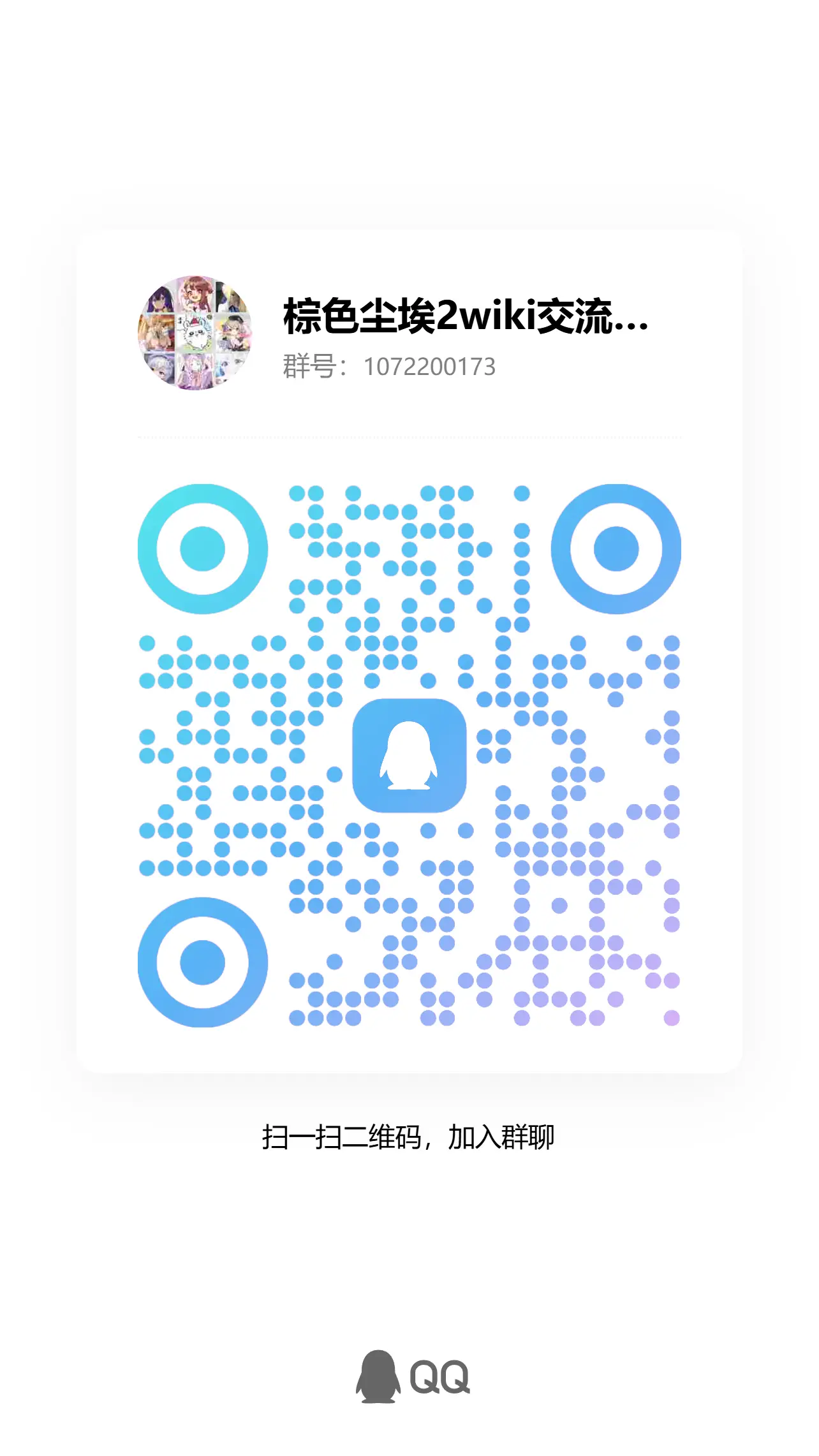 wiki大群永久炸了,牢鲨又创建了一个新群,兄弟们看过来新群严禁鉴证!!!严禁鉴证!!!看到直接永飞!新群群号:1072200173 (棕色尘埃2wiki交流群转生版)一键进群:点击这里新群二维码: