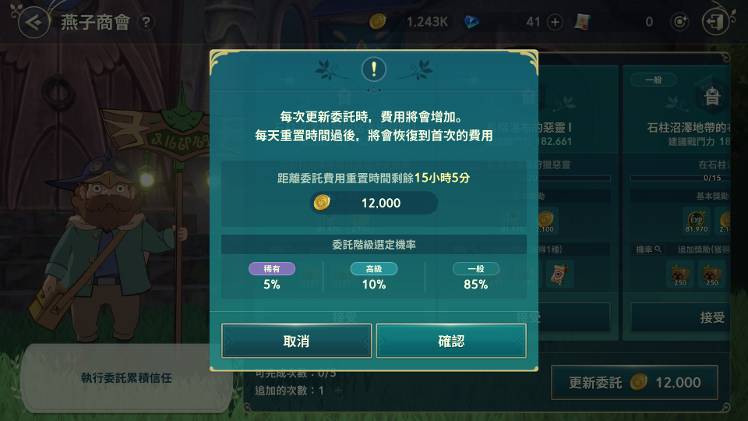只接一个任务➡完成接的唯一一个任务➡回到商会只有一格会被洗掉➡没有稀有或高级再按更新委托!